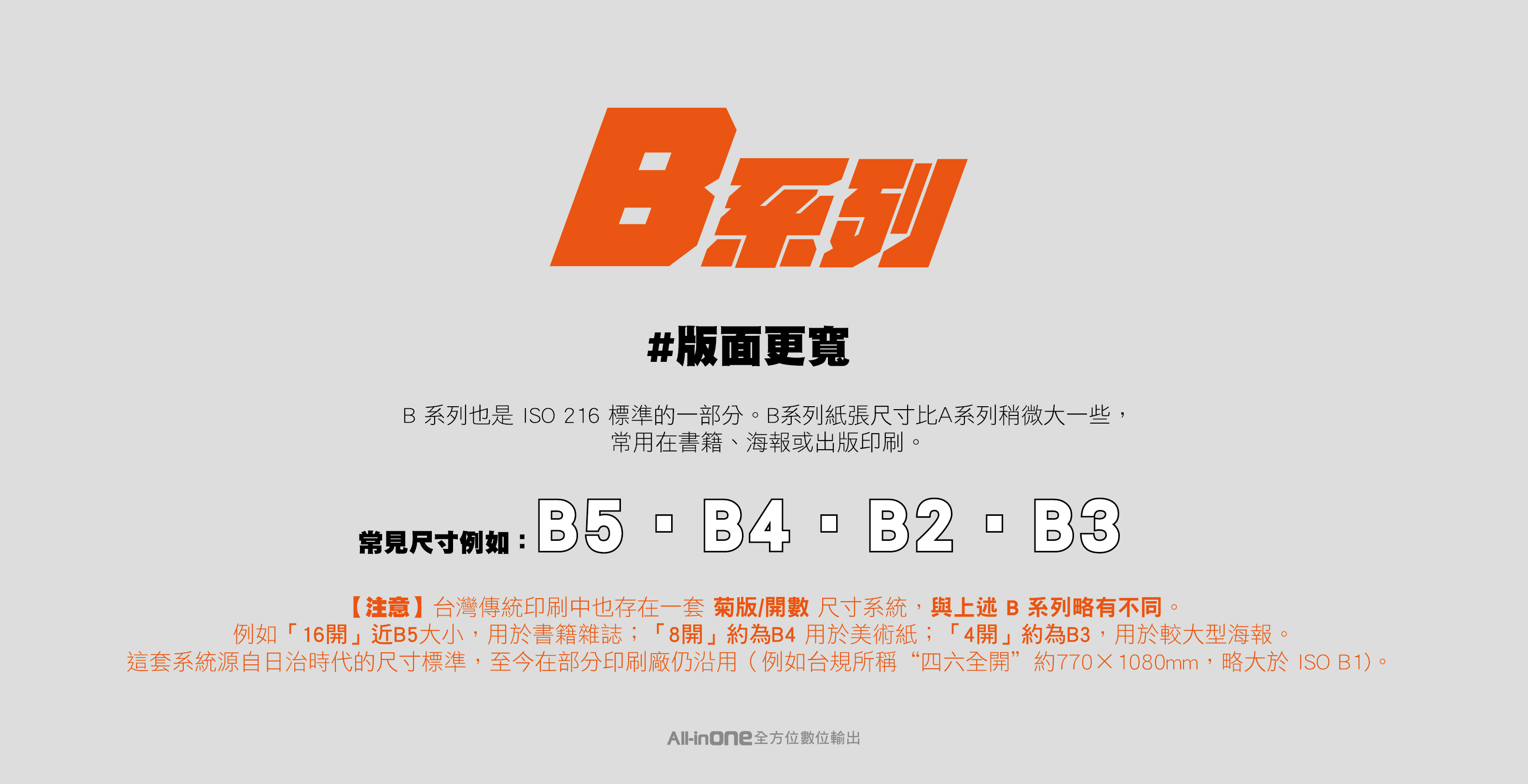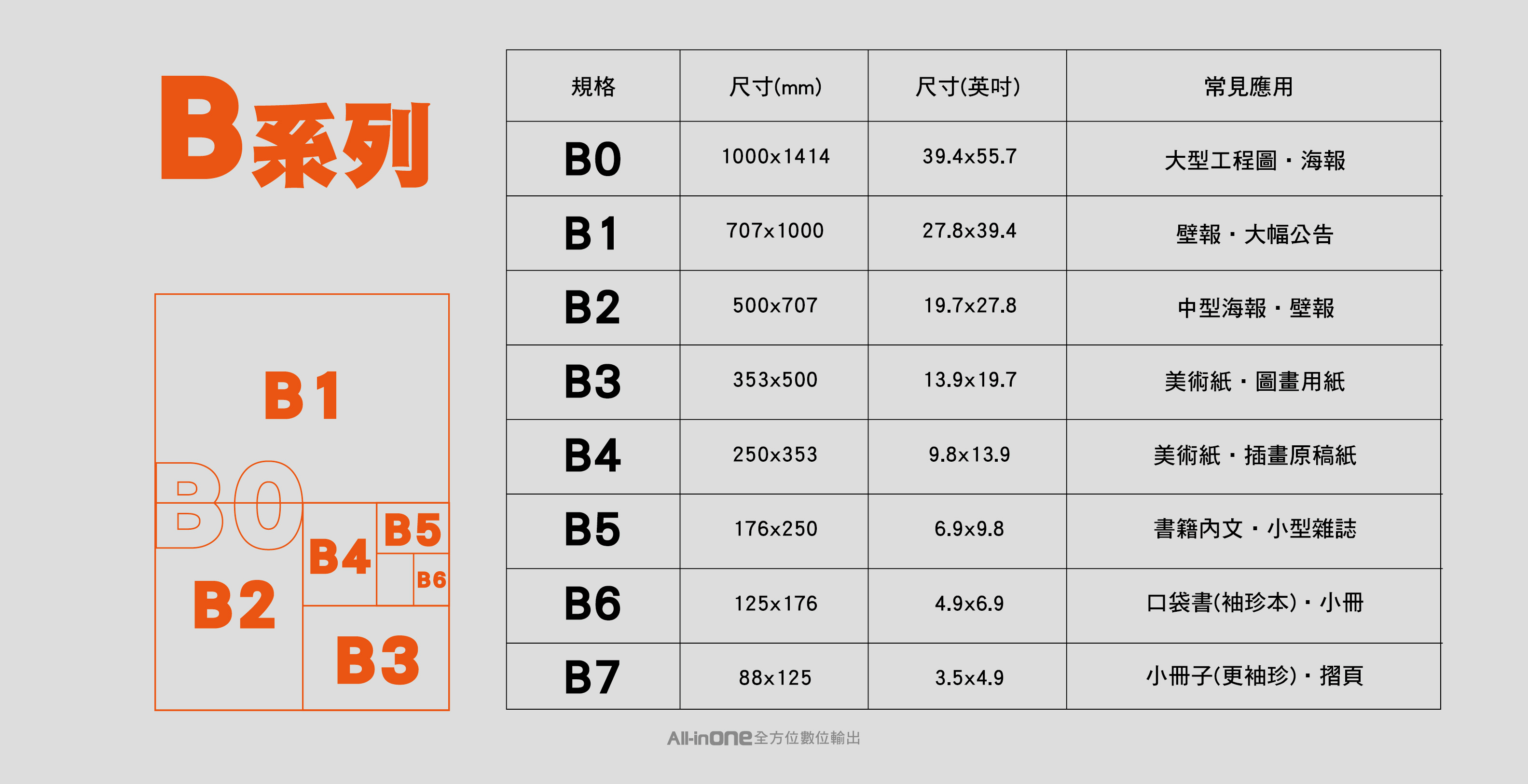 ★B系列紙張 尺寸比A系列稍微大一些,常用在書籍、海報或出版印刷。